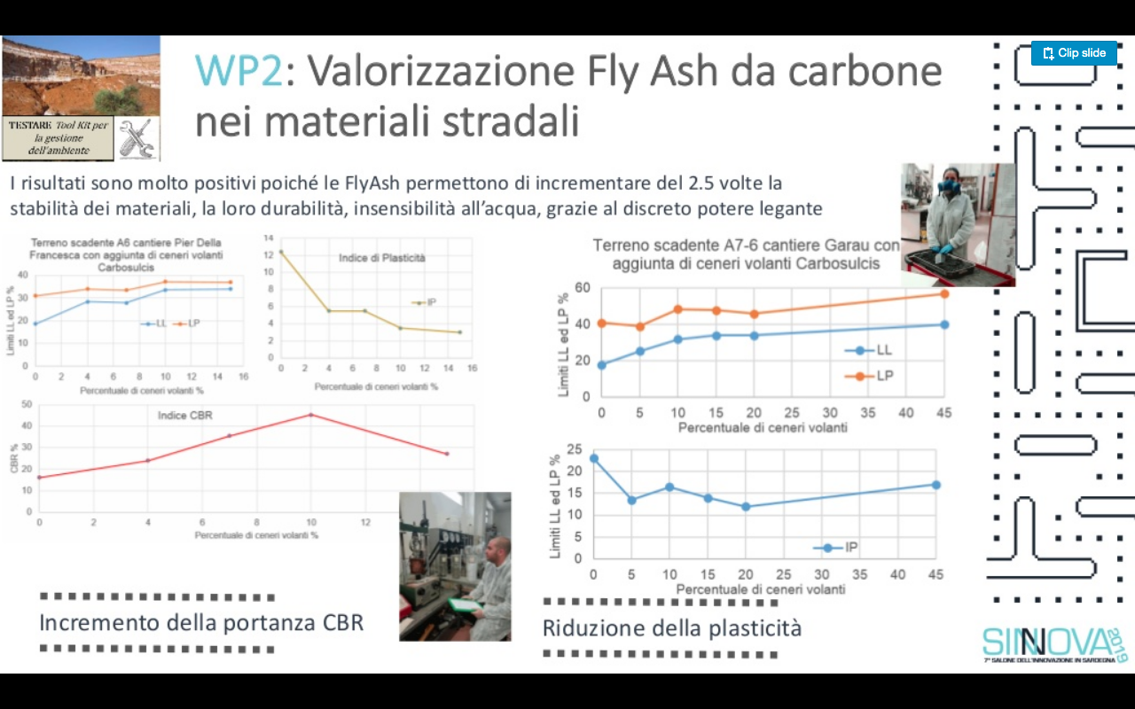Il 10 febbraio scorso sono stati presentati i risultati delle iniziative promosse sul territorio. Le aziende hanno testato una serie di kit per valutare gli impatti delle loro attività su suoli, acque e aria. Alcune hanno adoperato tecnologie per valorizzare le scorie, altre hanno eliminato gli inquinanti con soluzioni di recupero, bonifica e risanamento allo stato dell’arte. Sono state applicate anche tecniche geofisiche, non invasive, per la caratterizzazione delle proprietà del sottosuolo in siti con problemi di contaminazione con lo scopo di definire la presenza di sostanze inquinanti, lo stato di degradazione e le proprietà idrauliche.