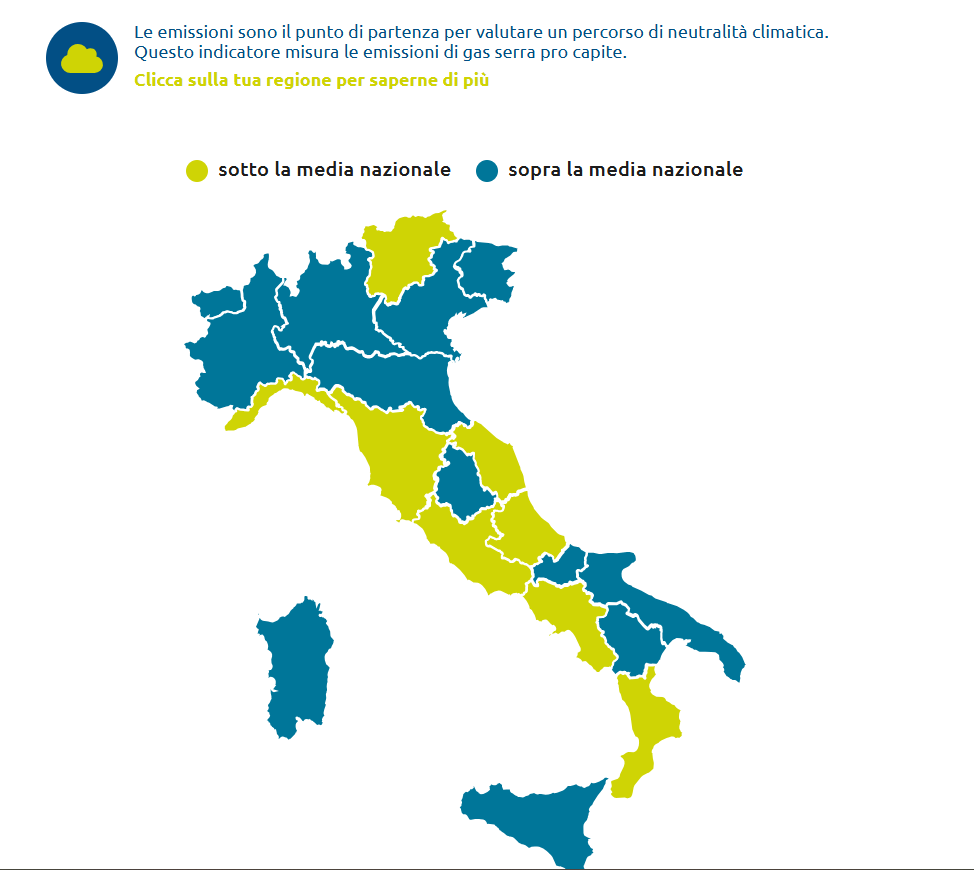 I dati evidenziano performance eccellenti per Campania e Lazio, che registrano i livelli di emissioni pro capite più bassi (rispettivamente 3,4 e 5 tonnellate di gas serra per abitante, contro una media nazionale di 6,7).