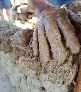 preparazione di un mattone adobe_Foto Ilaria C. Restifo Il pisé. È la tecnica della “terra battuta”. La terra viene posizionata tra due casseforme di legno e compressa con un grande pestello per creare un muro solido e compatto.