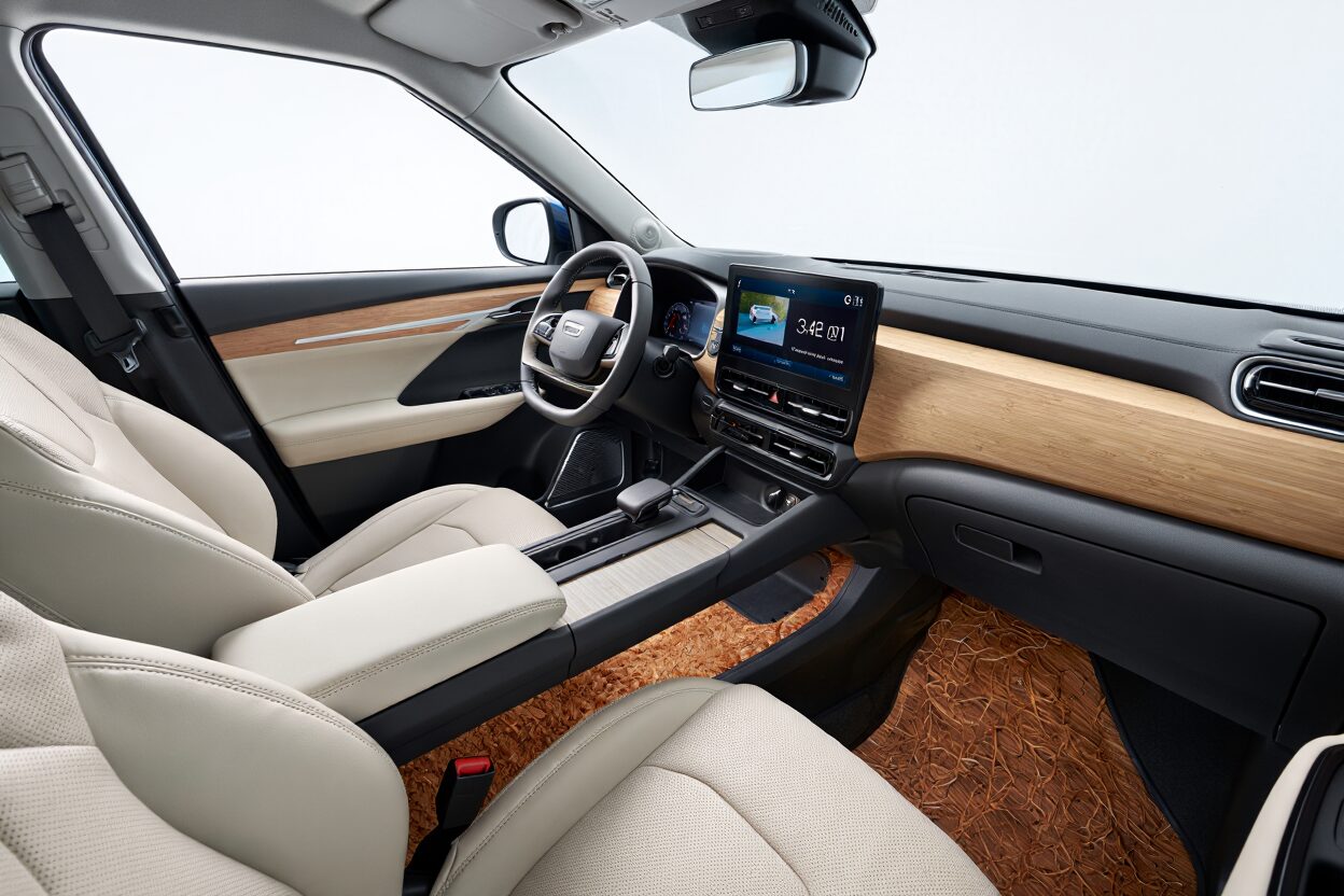 Questo approccio non solo valorizza le risorse locali e abbondanti, ma riduce anche l’energia necessaria per trasformarle. Alcune fibre naturali, come il bambù o l’eucalipto, crescono rapidamente e richiedono poca acqua e pesticidi. Land Rover, ad esempio, ha integrato l’eucalipto nei suoi interni per un risultato che coniuga estetica e responsabilità ambientale. Il grande vantaggio di queste fibre, oltre alla leggerezza e alla resistenza, è che permettono di creare superfici visivamente calde e accoglienti, in grado di cambiare radicalmente la percezione dell’abitacolo.