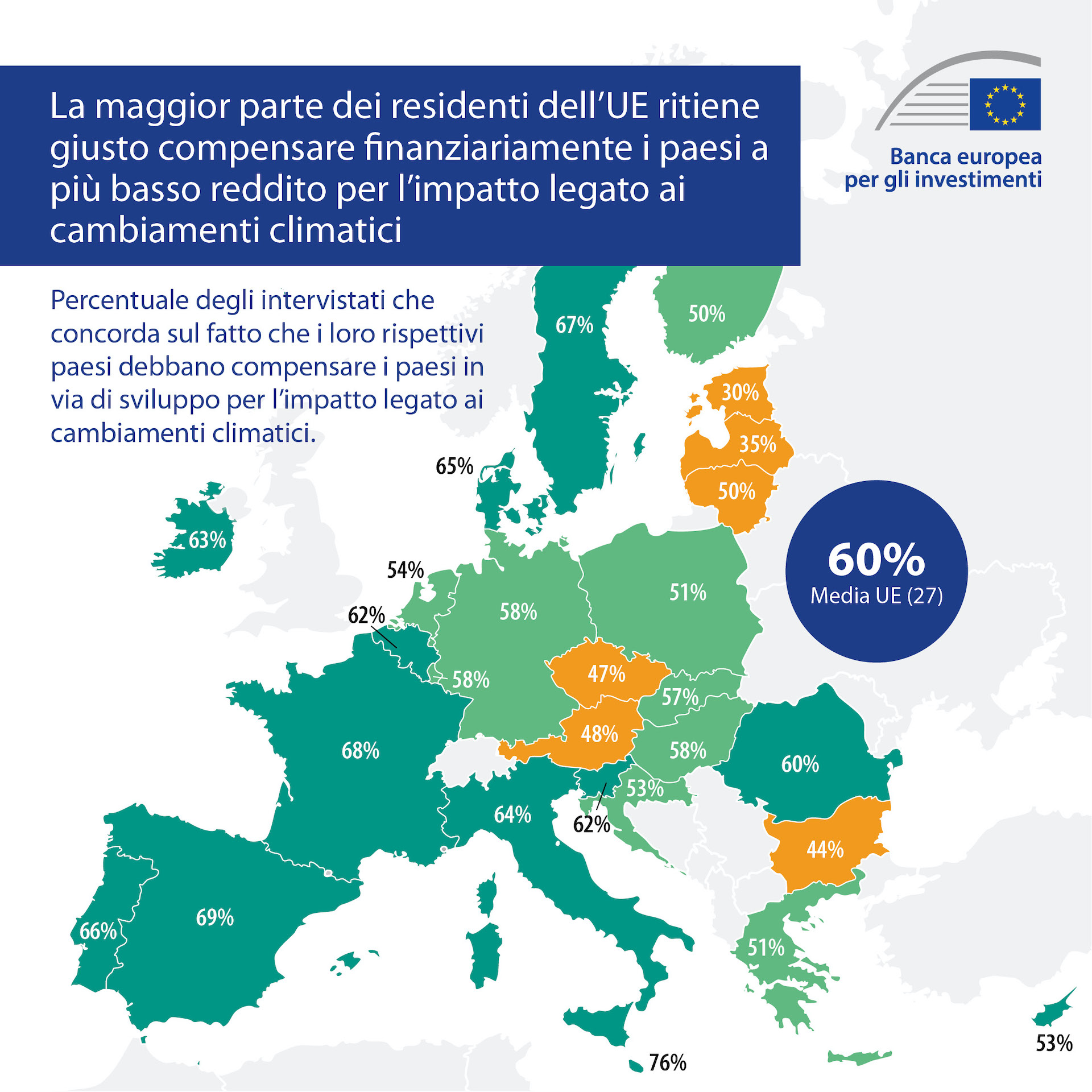 “Sono molto soddisfatta di vedere che la popolazione italiana è sempre più consapevole e impegnata nella lotta contro il cambiamento climatico. Affrontarne le ripercussioni nel mondo è fondamentale per garantire stabilità, prosperità e sicurezza”, ha commentato Gelsomina Vigliotti, vicepresidente della BEI.