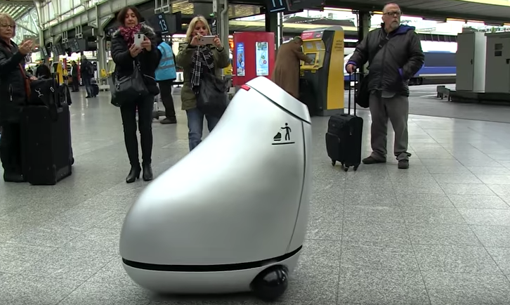 Questo cestino high tech, che è in grado di farsi strada tra la folla nel caso ci sia bisogno di raccogliere un rifiuto, è dotato di due sonar, due laser e un lidar (laser telerilevamento), soluzioni che gli permettono di riconoscere gli ostacoli nel momento in cui si muove. Grazie ai suoi algoritmi può imparare a identificare la presenza di persone e, sfruttando la sua fotocamera Kinect, è in grado di riconoscere chi lo chiama per gettare i rifiuti.