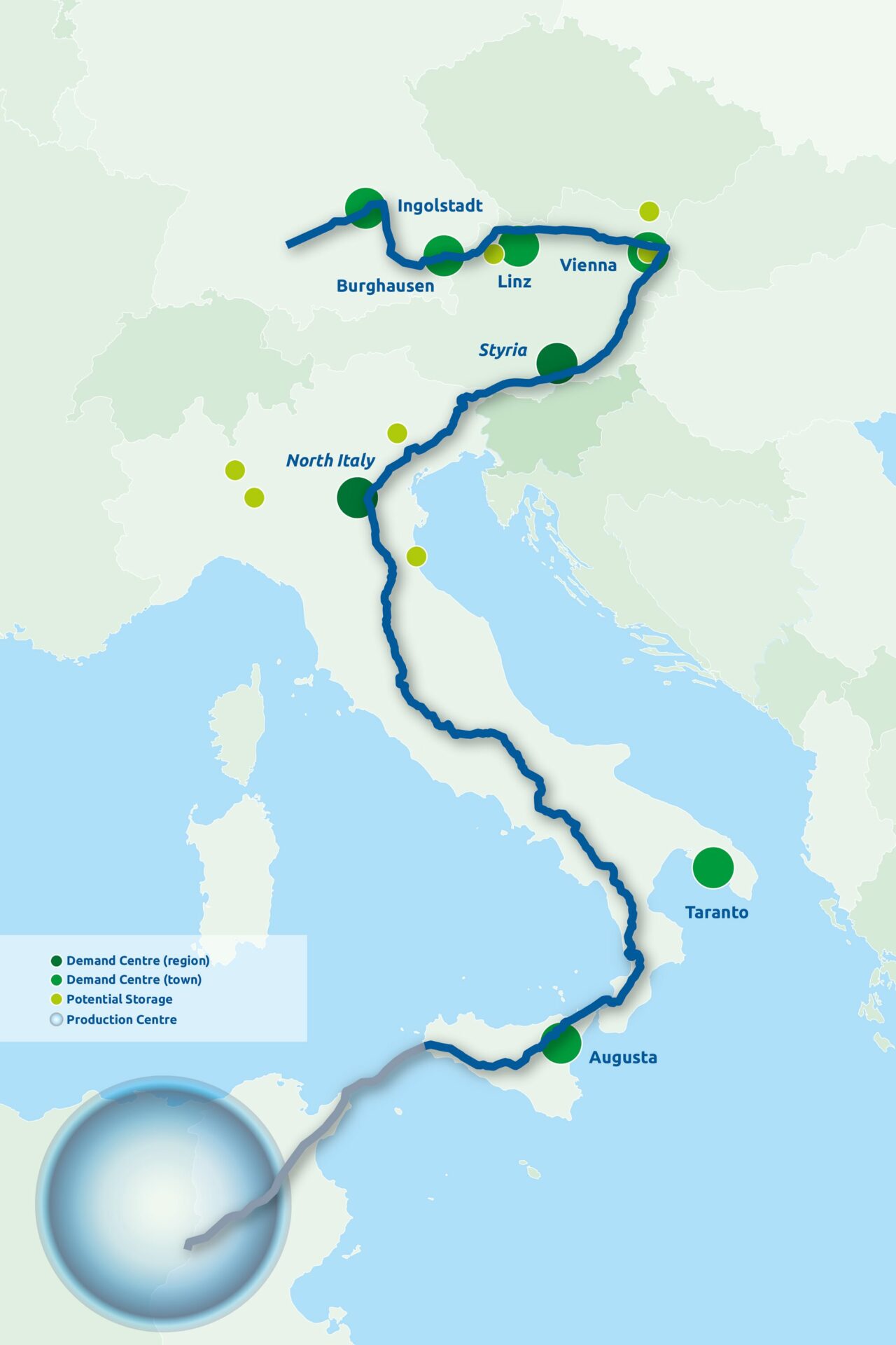 Si tratta di un progetto la cui capacità prevista è di 4 milioni di tonnellate al 2030, anno previsto di piena funzionalità, per un percorso di 3.300 chilometri.